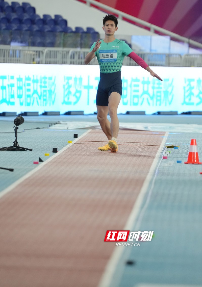 红网时刻新闻11月19日讯(记者 陈杰)11月18日晚,第十五届全运会田径项目的比赛继续在广东省奥体中心体育场进行。在男子跳远决赛中,湖南运动员张溟鲲以7.99米摘银,吉林队舒衡夺冠。