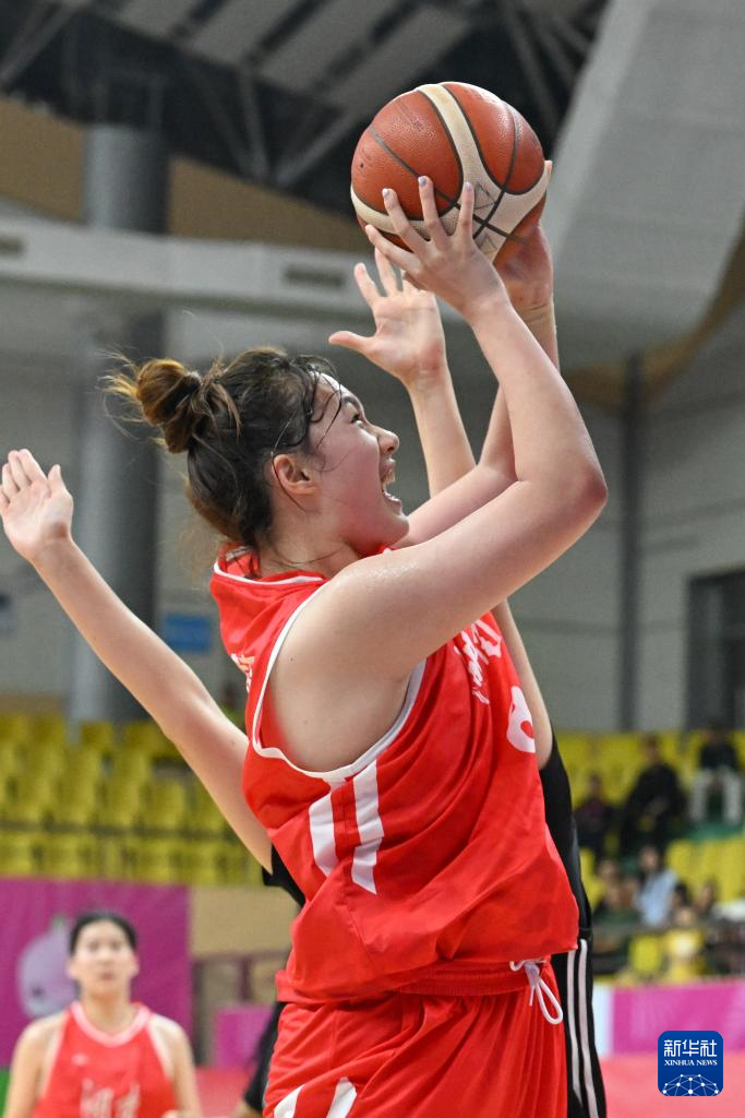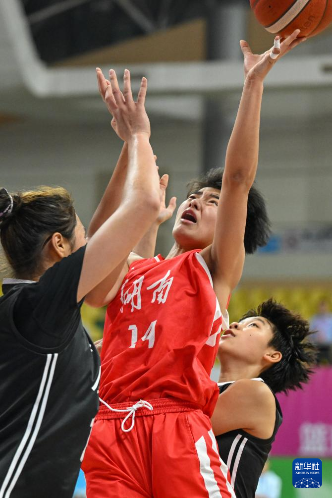 11月8日,湖南队球员胡语溪(中)在比赛中投篮。