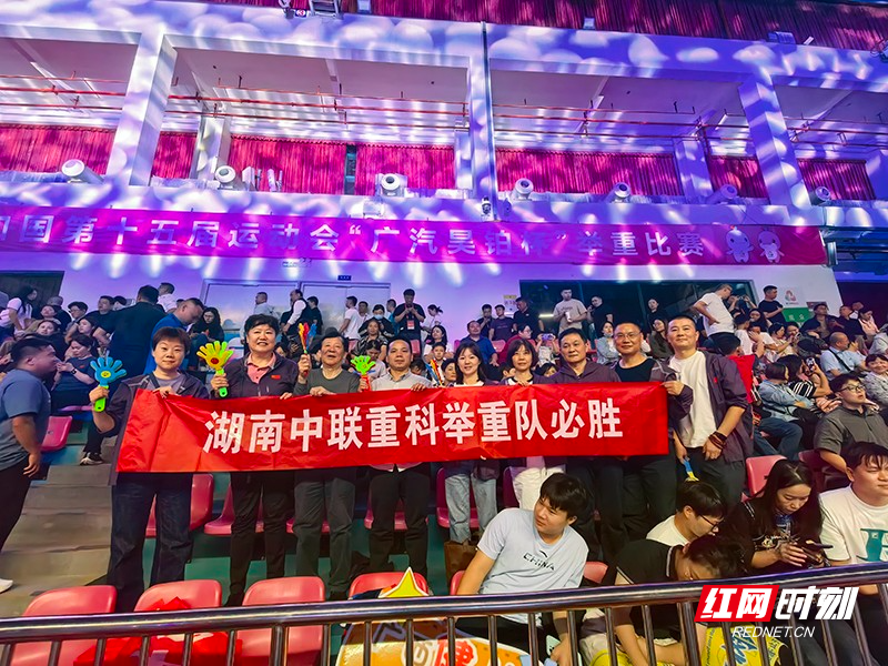 这支拉拉队,正是由湖南省体育发展基金会组建的助威团。其中,有来自湖南钢铁集团的“七一勋章”获得者艾爱国,全国劳动模范冯宇,以及湖南高速集团收费部、养护部的一线基层员工。比赛中,他们精心展示出“国企助威十五运 体育湘军勇夺金”和“湖南中联重科举重队必胜”的横幅,在可容纳近千人的体育馆内格外醒目。在他们的见证下,湖南中联重科举重队的侯志慧以抓举93公斤、挺举110公斤、总成绩203公斤的成绩成功夺金。