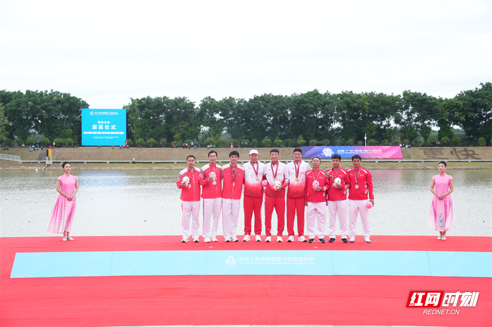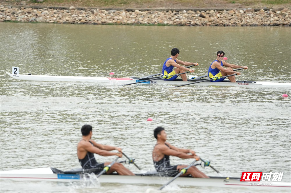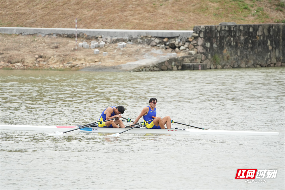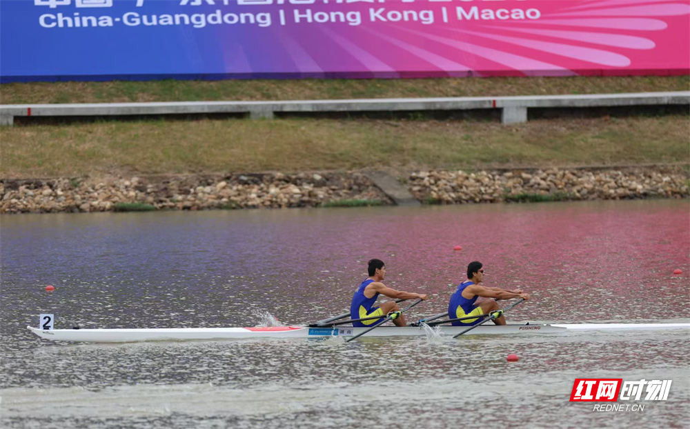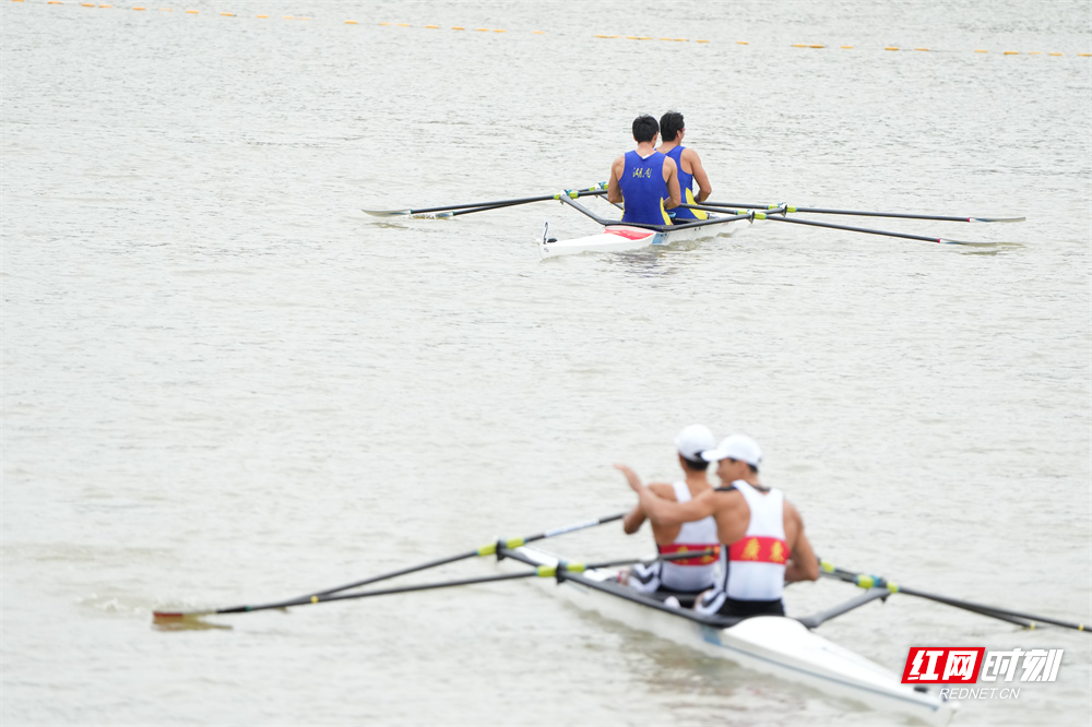 红网时刻新闻11月11日讯(记者 周雨墨 陈杰 )11月11日,第十五届全运会赛艇男子双人双桨决赛在广东国际划船中心举行。历经五届全运会的湖南队“老大哥”张亮与四征全运的伊绪帝搭档,以4:39.43的成绩遗憾摘银。东道主广东队获得冠军。