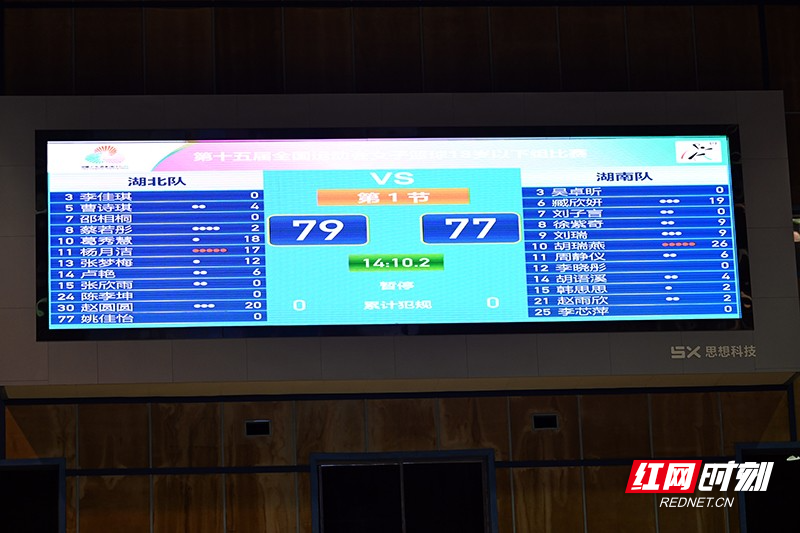 红网时刻新闻11月12日讯(记者 符洹雨)11月12日下午,第十五届全运会篮球项目女子18岁以下组5-8排位赛在中山市体育馆迎来一场“两湖德比”,最终,湖南队77-79憾负湖北队,后续将参加7-8名决赛。