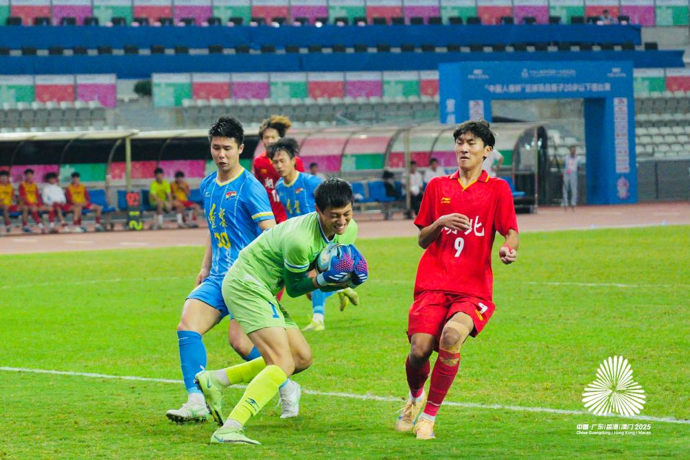 曲格平(左一)代表辽宁队在第十五届全运会U20男足项目四分之一决赛中。赛事组委会供图