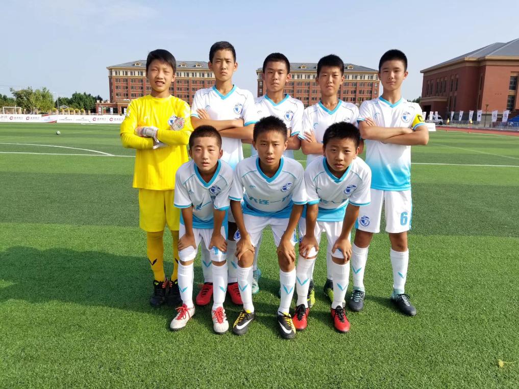 13岁的曲格平(后排右一)代表大连队参加辽宁省第十三届运动会青少年组男足比赛。受访者供图