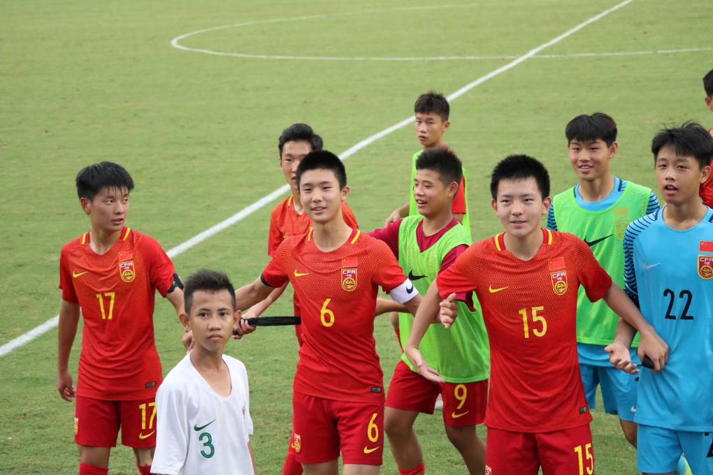 2019年7月,曲格平(中)在“武汉杯”国际少年足球邀请赛代表中国U14国少队参赛。受访者供图