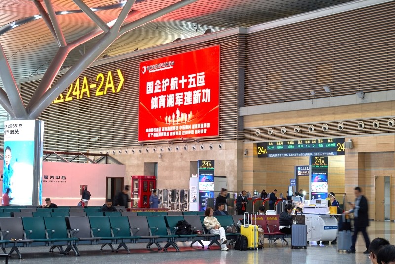 红网时刻新闻11月8日讯(记者 符洹雨)11月9日至21日,以“激情全运会,活力大湾区”为主题的第十五届全国运动会(即“十五运”)将在广东、香港、澳门火热举行。近日,湖南省体育发展基金会“国企护航十五运 体育湖军建新功”宣传海报在长沙南站候车厅LED大屏幕上滚动播出,吸引了众多市民游客驻足。
