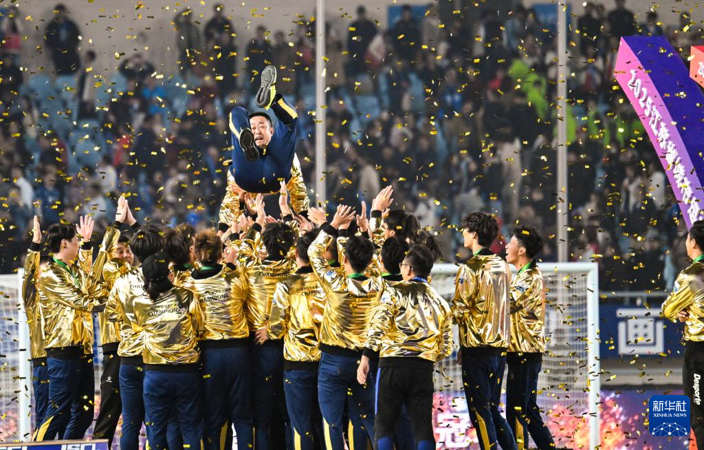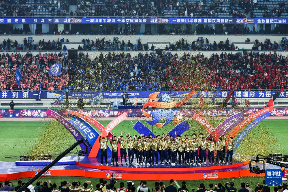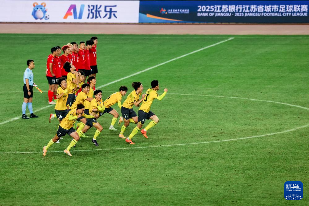 11月1日,在江苏南京举行的2025江苏省城市足球联赛(“苏超”)决赛中,南通队与泰州队在常规时间0比0战平,通过点球大战,泰州队总比分4比3战胜南通队,夺得冠军。
