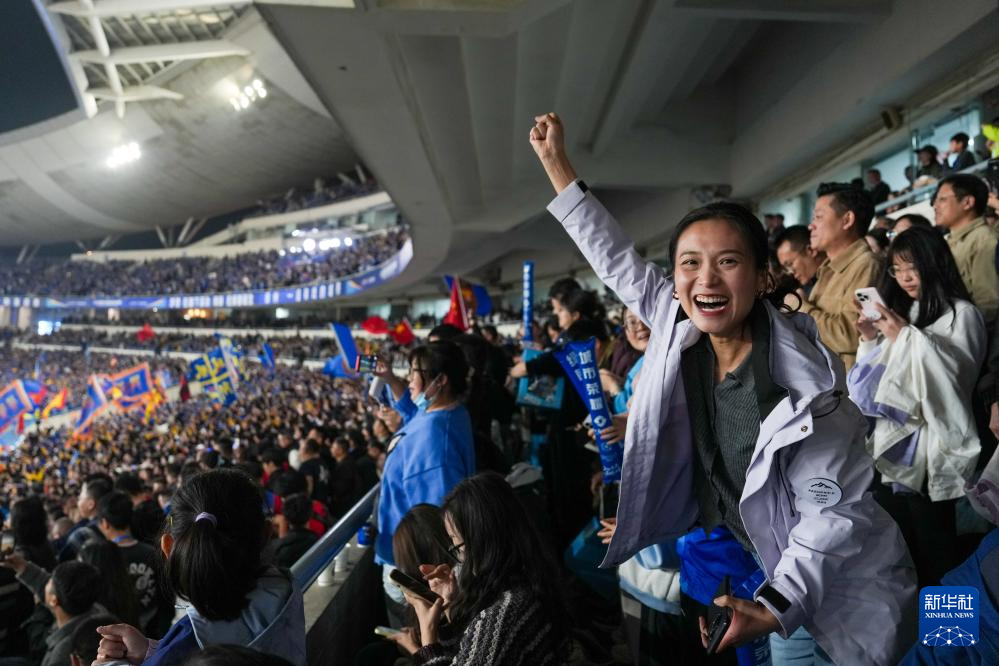 11月1日,南通队球迷在比赛中为球队加油助威。
