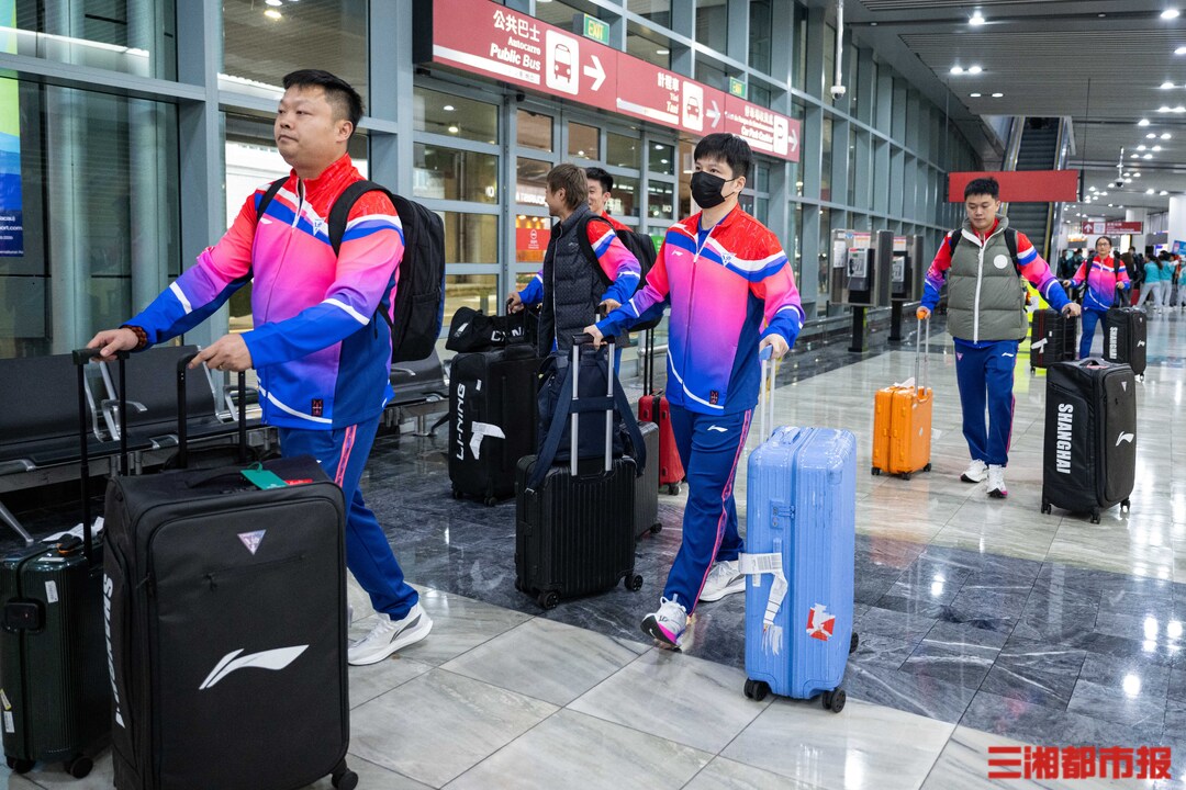 樊振东随上海乒乓球队抵达澳门。(新华社图)