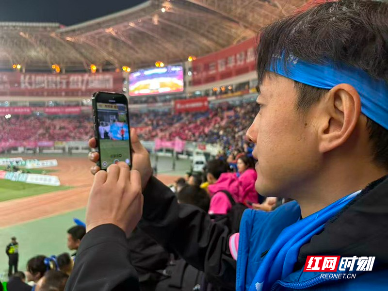 陈奇在长沙贺龙体育场湘超决赛现场。