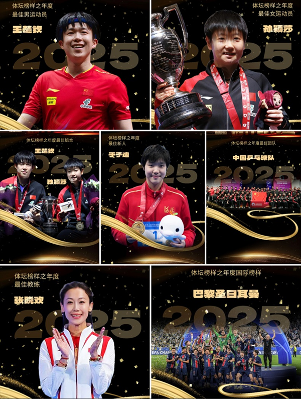 红网时刻新闻12月29日讯(记者 符洹雨)12月29日,由体坛传媒主办的第十六届体坛榜样年度评选结果正式发布。最终,中国乒乓球队成为最大赢家,王楚钦、孙颖莎分获年度最佳男女运动员,并携手摘得年度最佳组合奖。