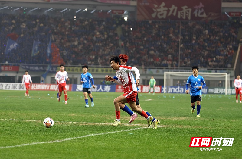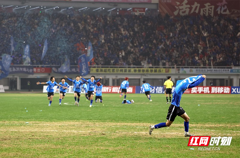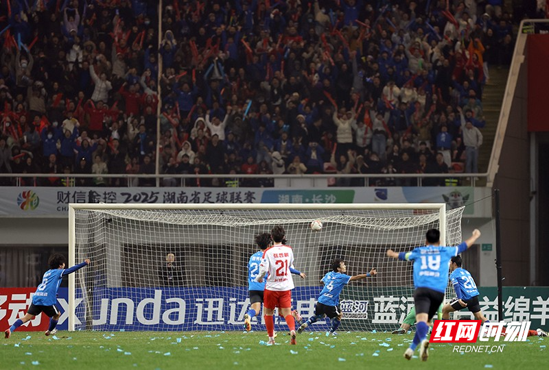 红网时刻新闻12月21日讯(记者 陈杰 周雨墨)12月20日晚,财信金控2025湖南省足球联赛(湘超联赛)展开了半决赛第一场比赛的角逐,由长沙队坐镇贺龙体育场迎战永州队。双方在常规时间内2-2战平,比赛进入点球大战,最终永州队以9-8战胜了长沙队,率先挺进湘超决赛。